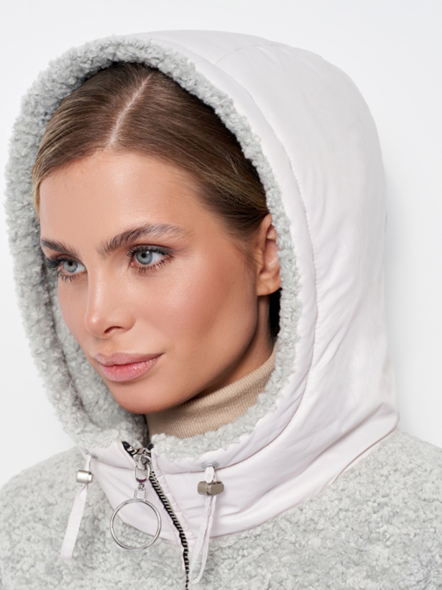 Шубка женская Тедди с капюшоном светло-серая