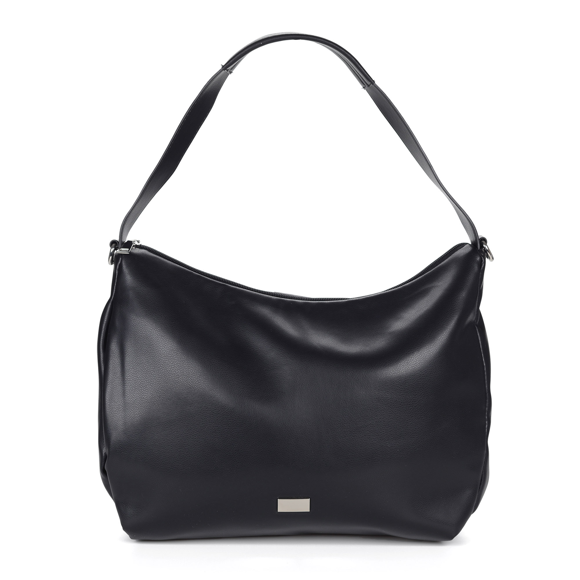 Черная сумка хобо из экокожи с дополнительной ручкой