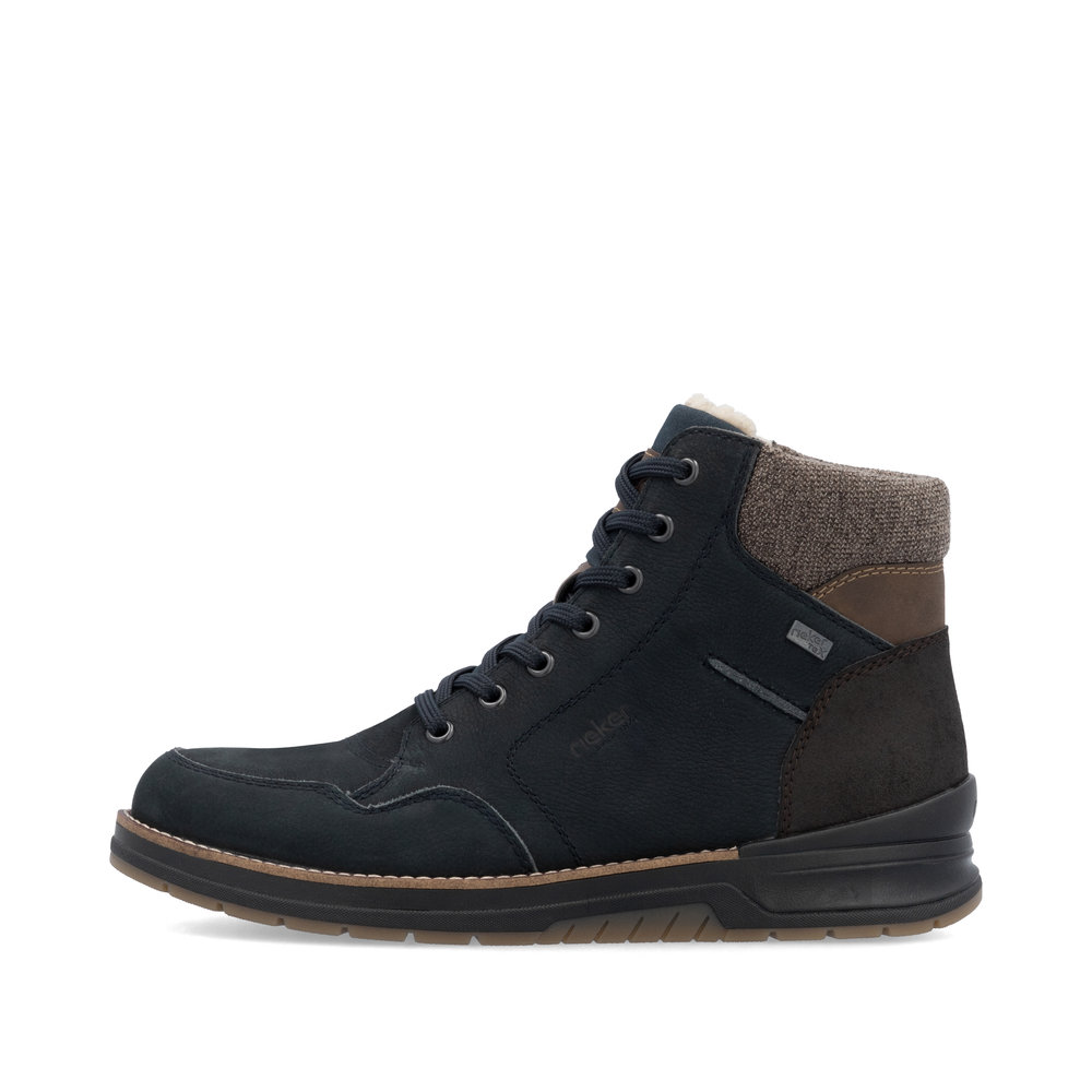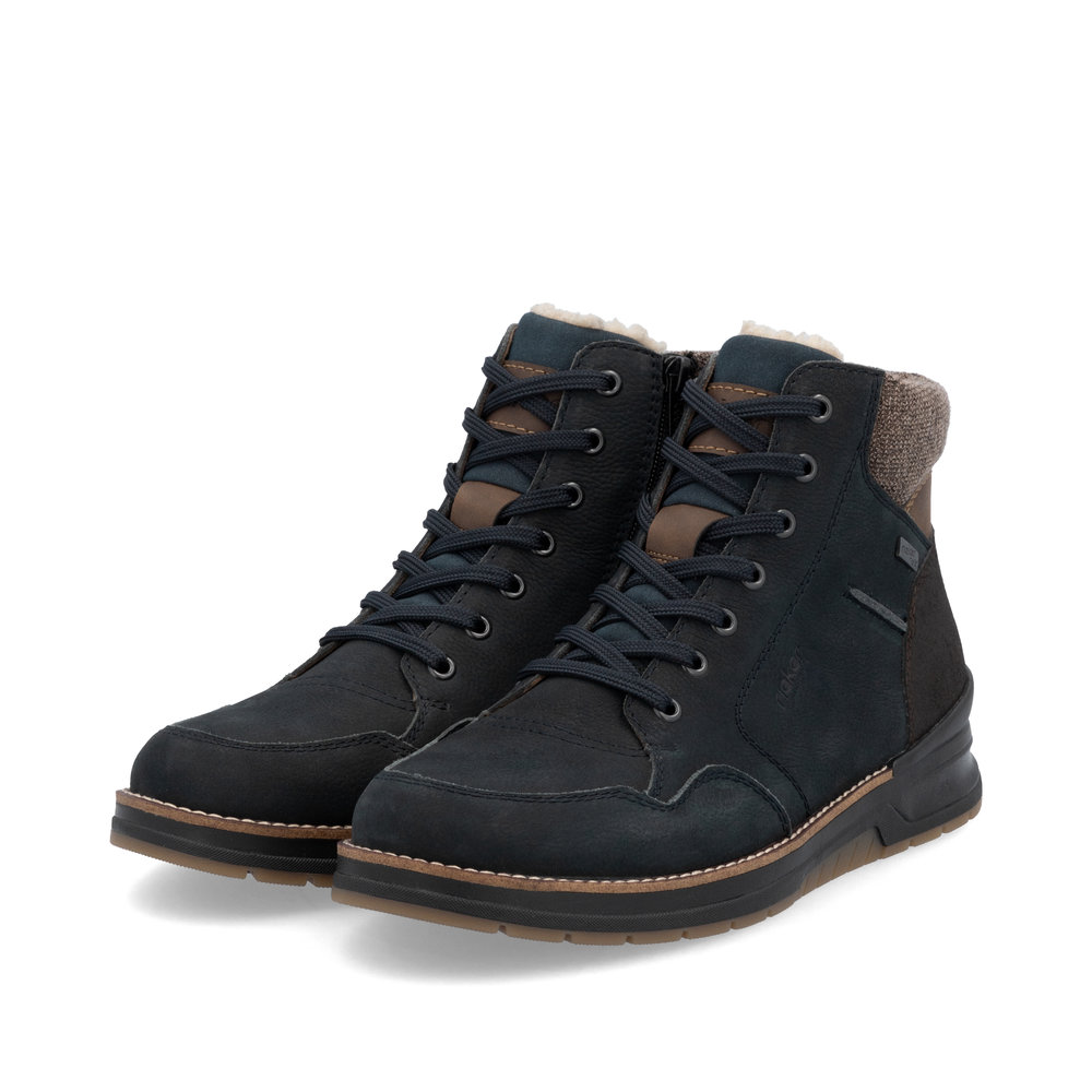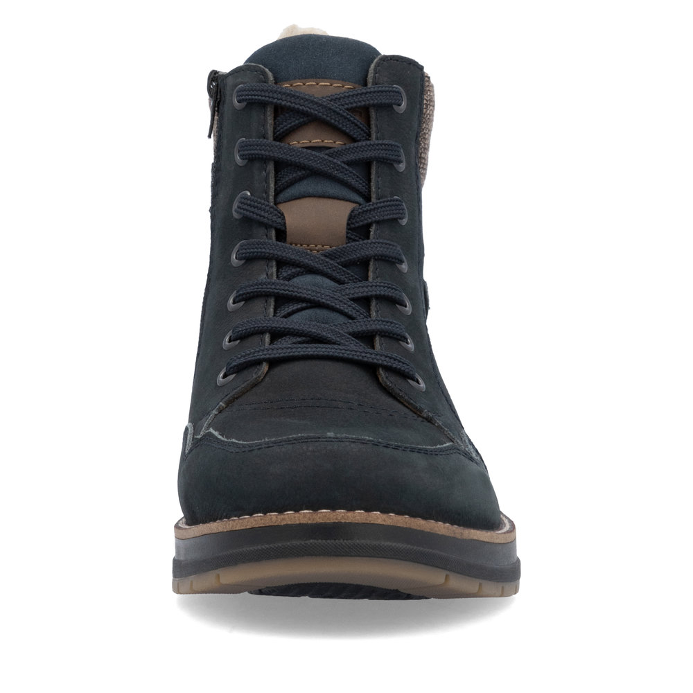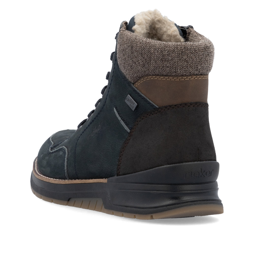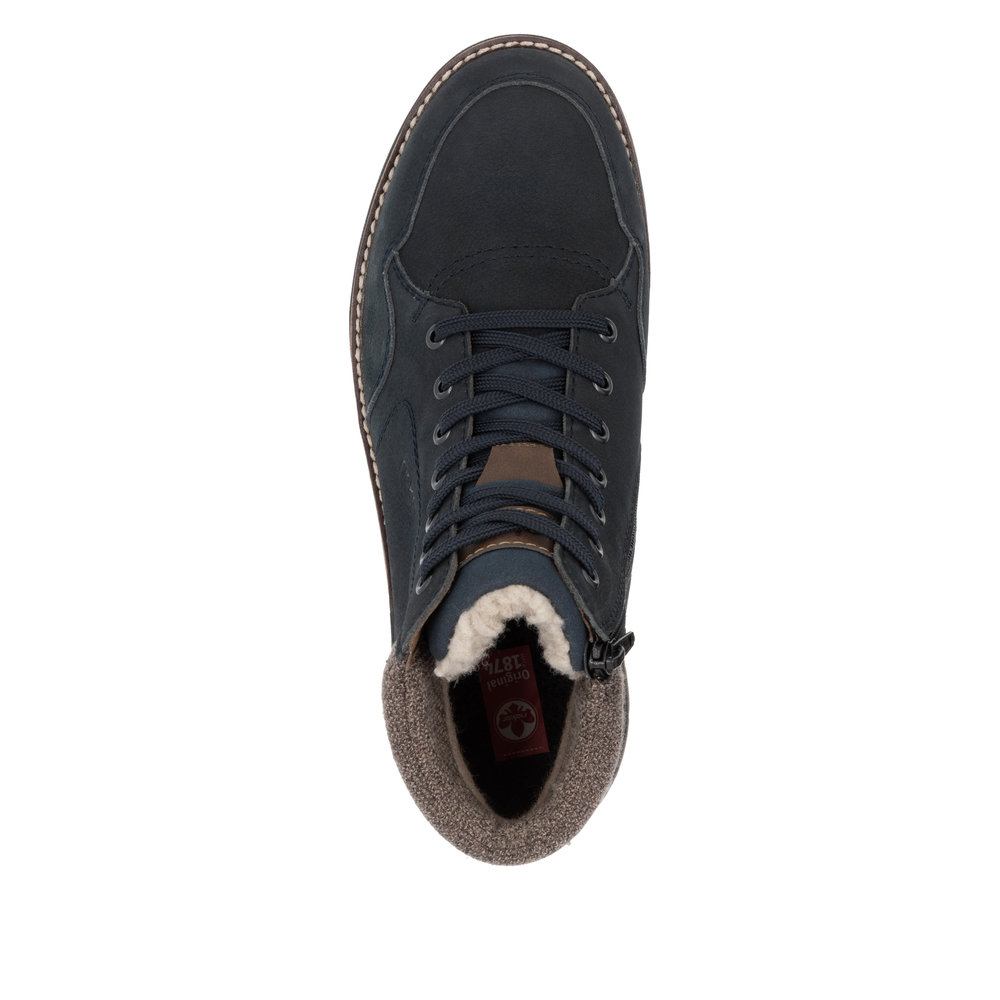 Синие зимние ботинки из кожи и экокожи