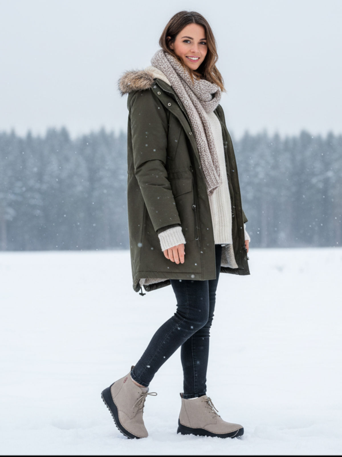 Бежевые утепленные ботинки из экокожи