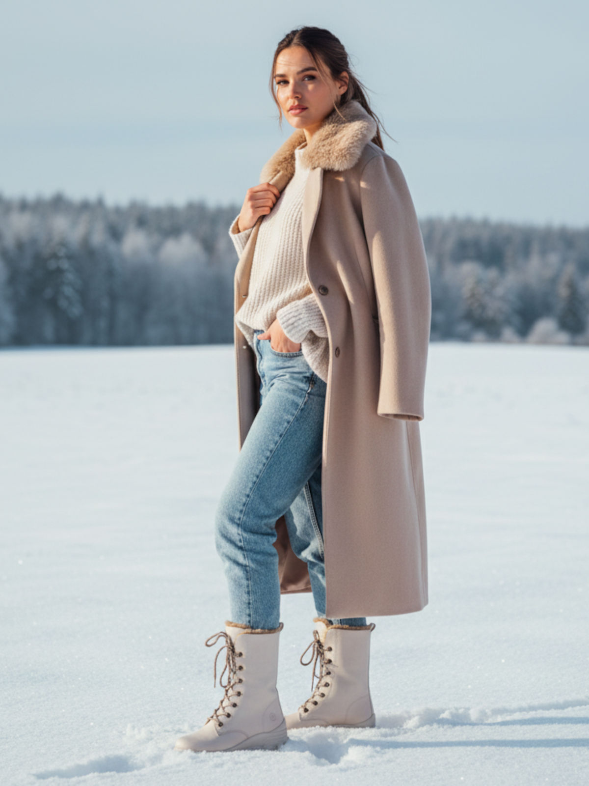 Бежевые утепленные ботинки из кожи и экокожи