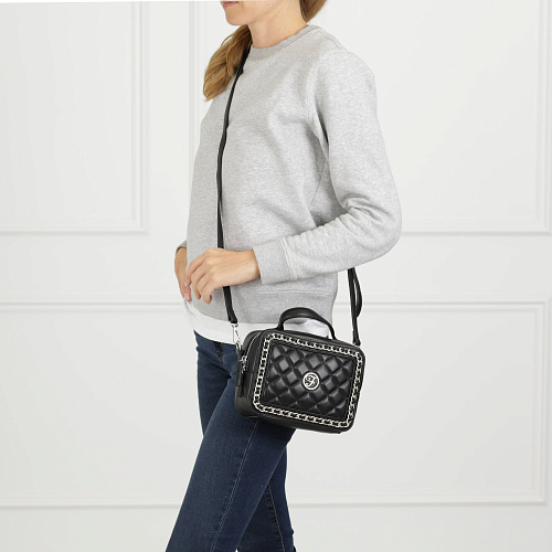 Черная сумка кроссбоди из стеганной экокожи с декором из цепочки