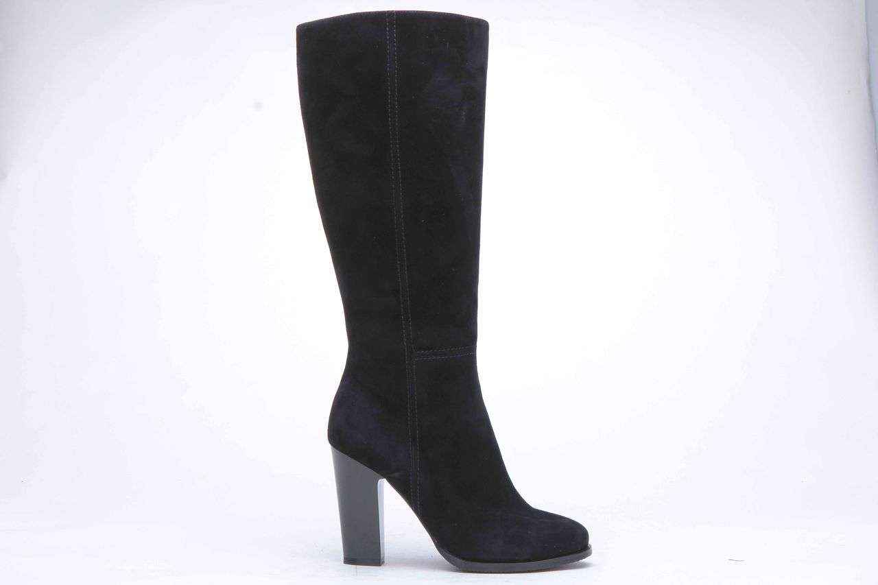 Черные сапоги из велюра на высоком каблуке