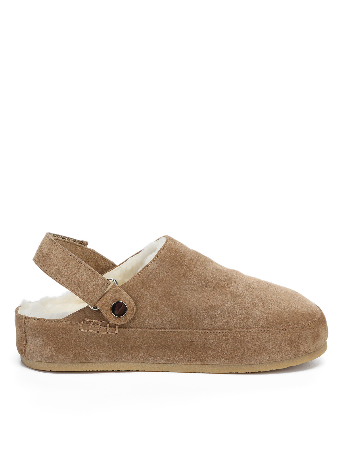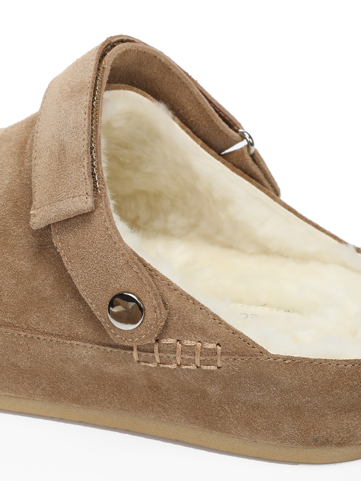 Бежевые зимние сабо из велюра