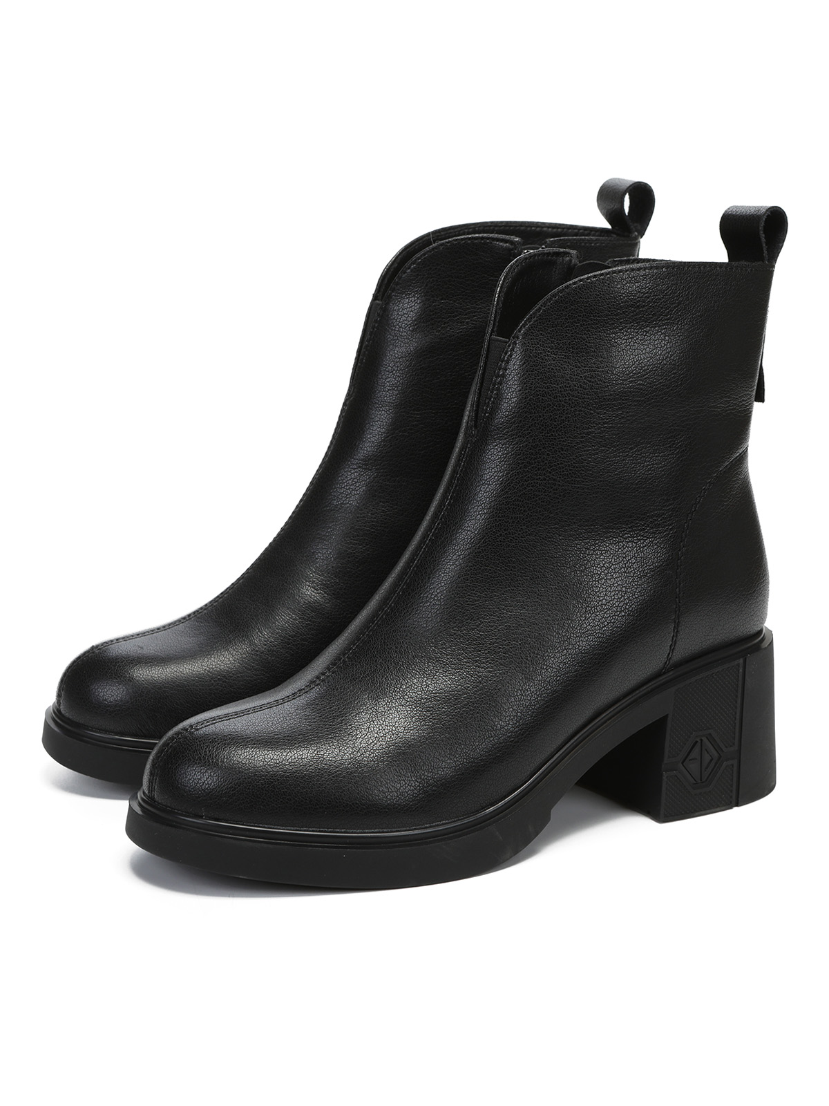 Черные зимние ботильоны из кожи