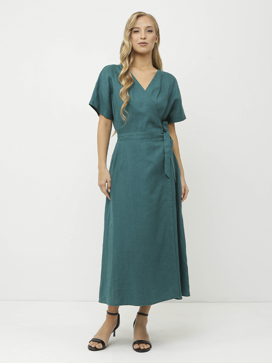Женское платье итальянского бренда FABRETTI выполнено из 100% высококачественного льна, который отличается мягкостью, воздухопроницаемостью и приятен к телу. Прямой силуэт платья подчеркивает фигуру, а длина миди делает его универсальным вариантом для различных случаев. Модель платья — прямой крой, с V-образным вырезом горловины, который визуально удлиняет шею и добавляет образу изысканности. Рукава — короткие, свободные. Завязывающийся пояс на талии позволяет регулировать силуэт, создавая желаемый образ.