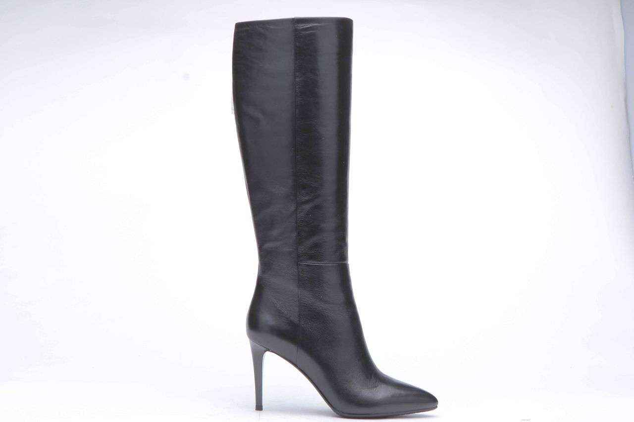 Черные кожаные сапоги на шпильке