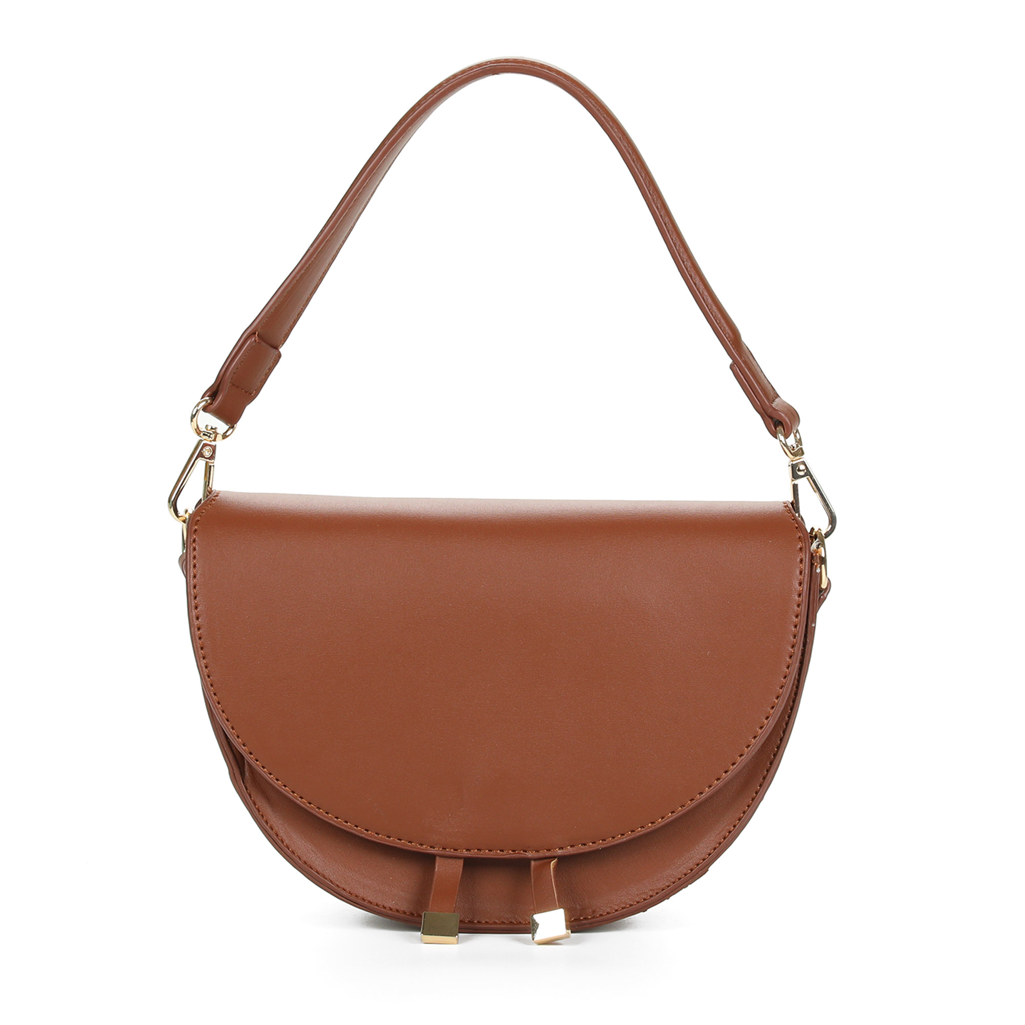 Коричневая сумка сэдл из экокожи с дополнительной ручкой