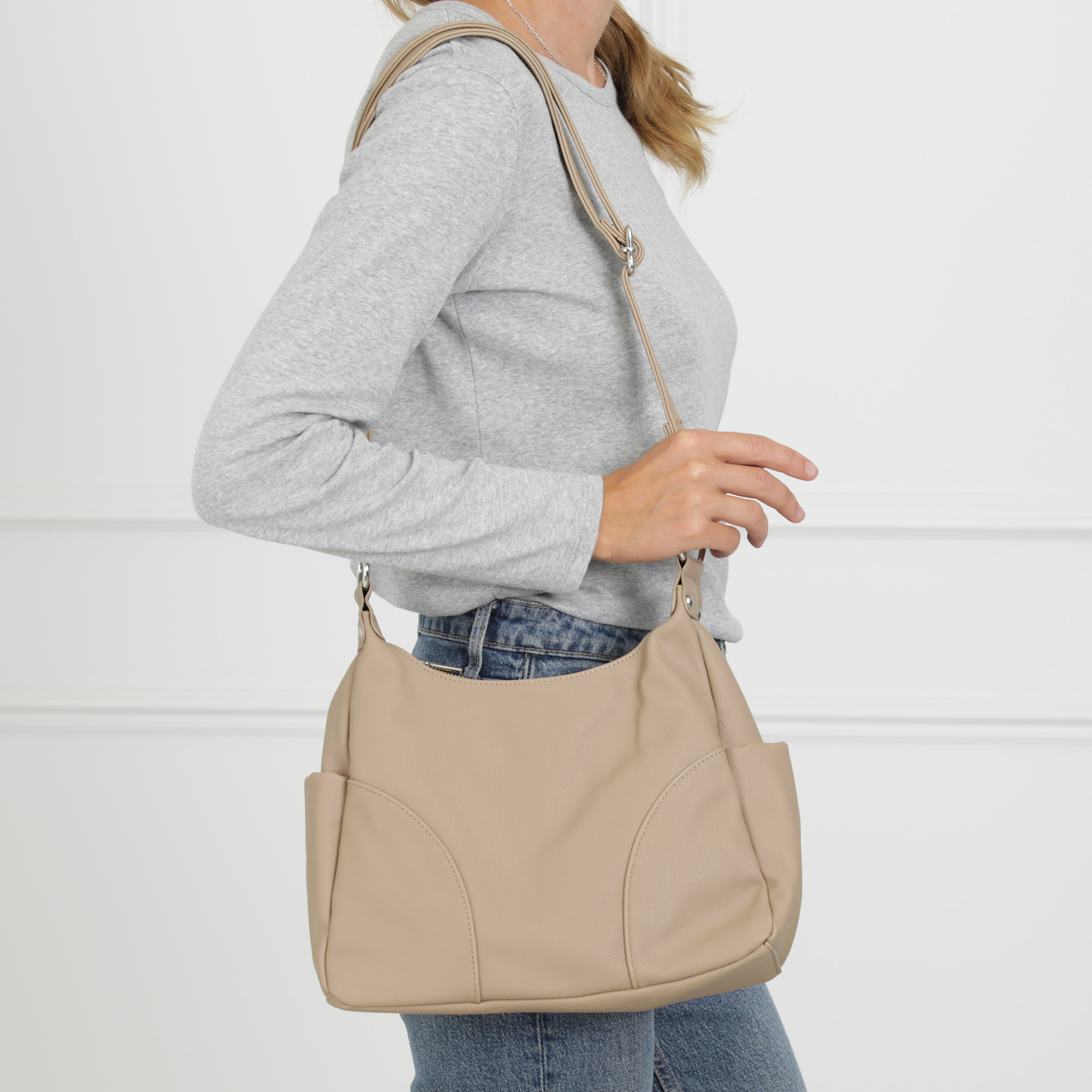 Серая сумка хобо из экокожи
