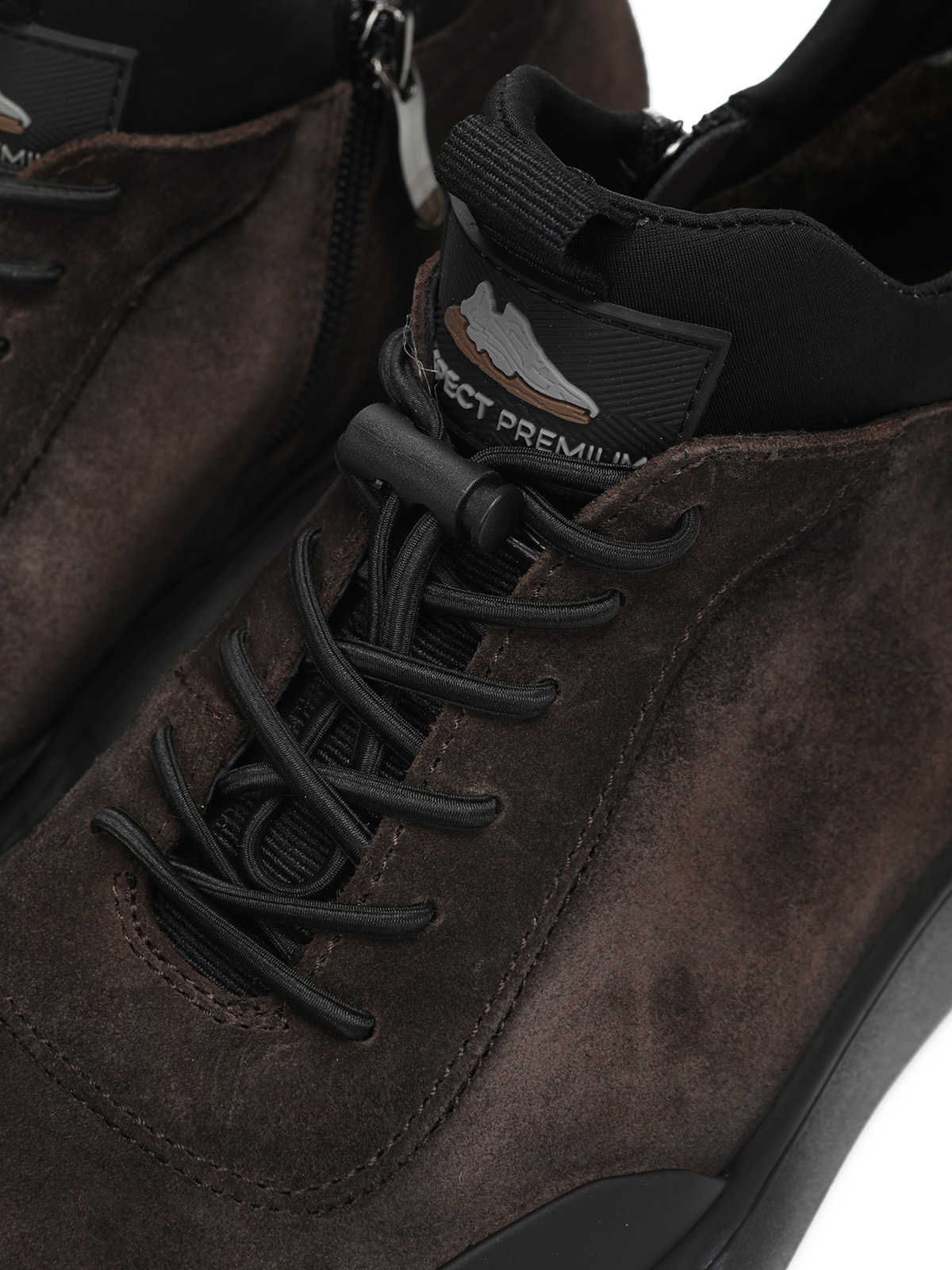Натуральные кожа и велюр в одной модели - красивая игра фактур и качество класса люкс. Натуральная кожа эластична и отталкивает воду. Натуральный велюр с характерной бархатистой поверхностью декоративен и приятен на ощупь.