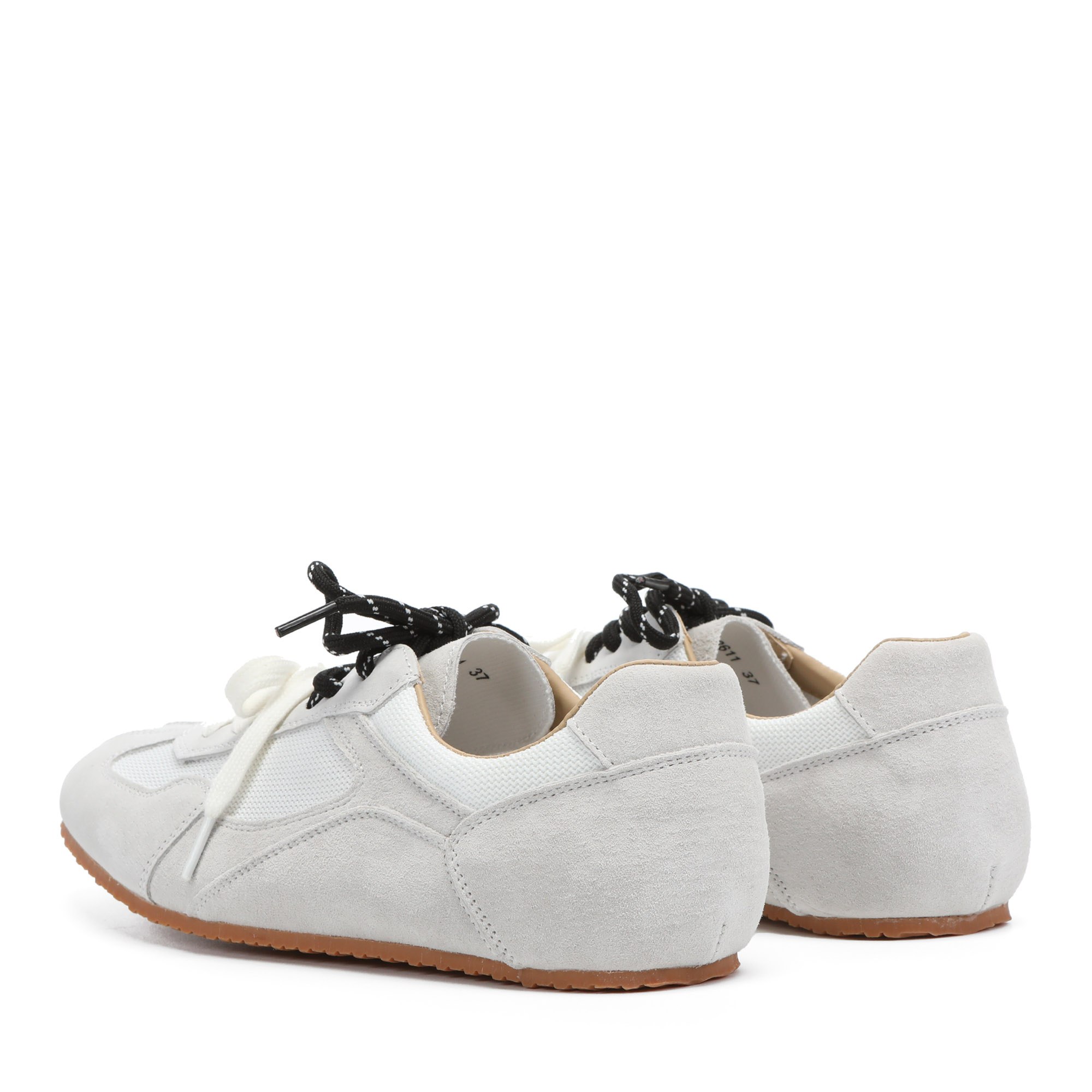 Кеды из бархатистого велюра и текстиля рисового цвета