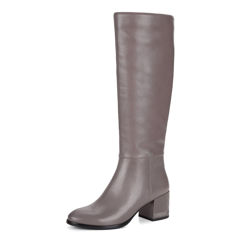 Серые сапоги из кожи на устойчивом каблуке