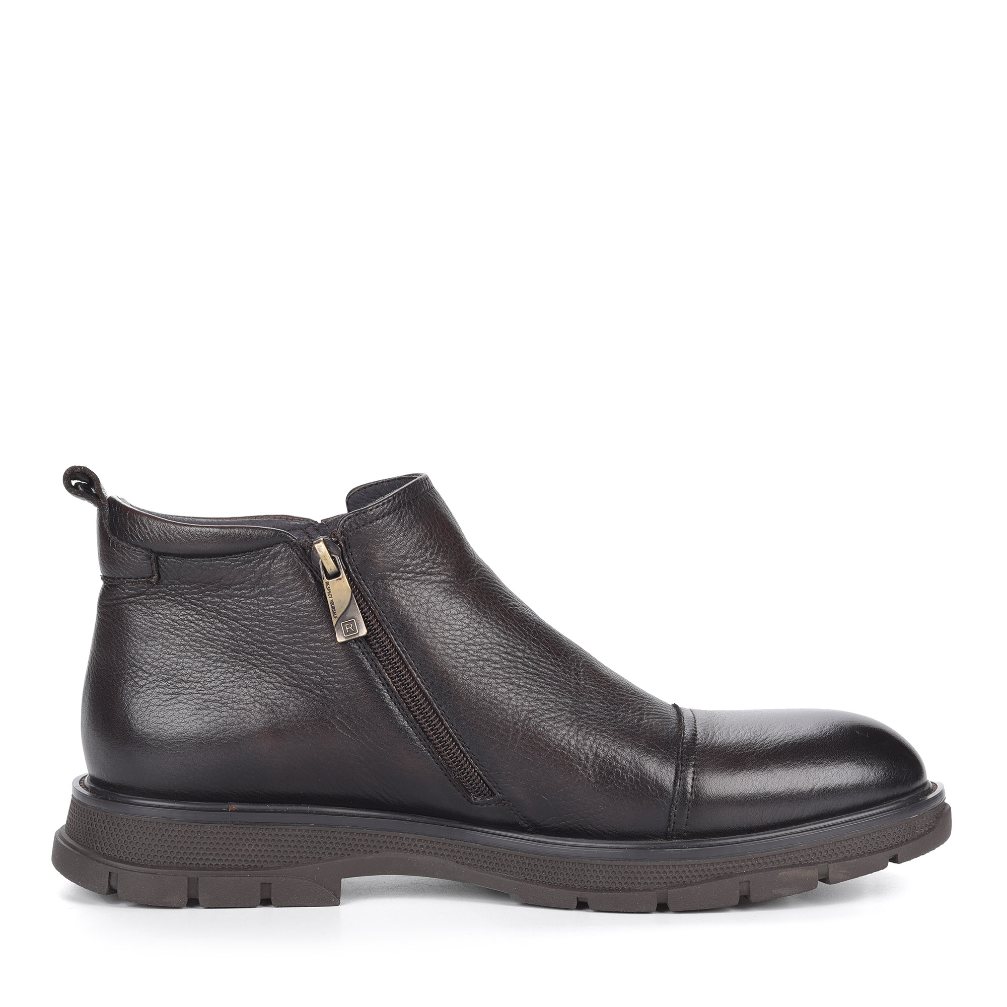 Коричневые ботинки на шерсти Respect сочетают в себе низкий подъем и массивную подошву, которая актуальна в холодный сезон. В такой обуви не придется переживать за то, что ноги могут замерзнуть во время долгих прогулок в морозную погоду. Мужская модель имеет верх из натуральной кожи, которая отвечает за ее долговечный срок службы. Присутствует текстильная стелька и подкладка на основе натуральной шерсти. Материал ценится своими теплорегулирующими свойствами. Массивная подошва изготовлена из термоэластопласта. Он сохраняет свою эластичность при минусовой температуре, выдерживает серьезные нагрузки и демонстрирует термостойкость. Кожаные ботинки не имеют застежки, так как в этом варианте в ней нет никакой необходимости. Обувь и без того легко надевается и надежно фиксируется на ноге. Она соответствует стилю повседневной классики, что является одним из ее преимуществ.
