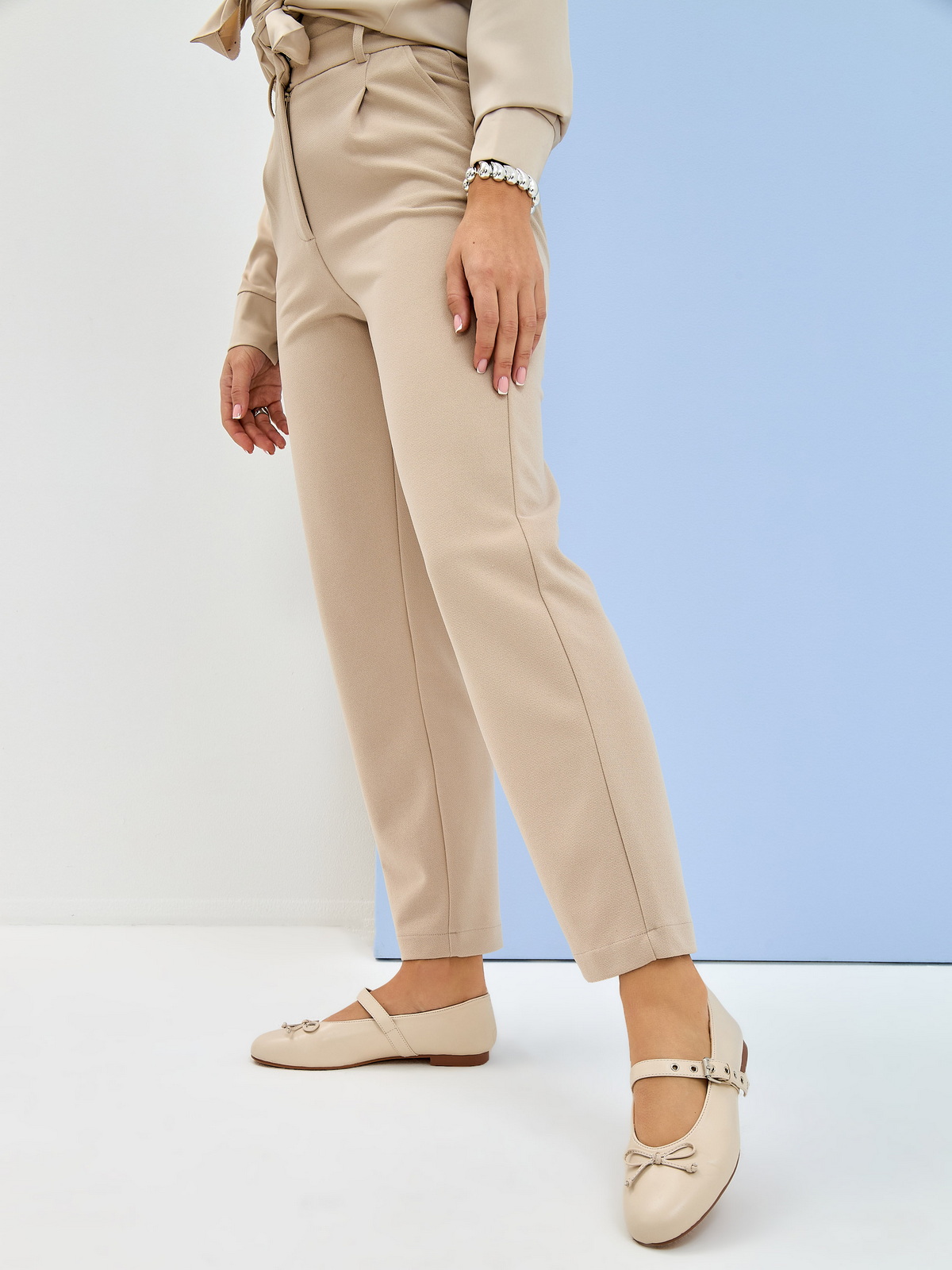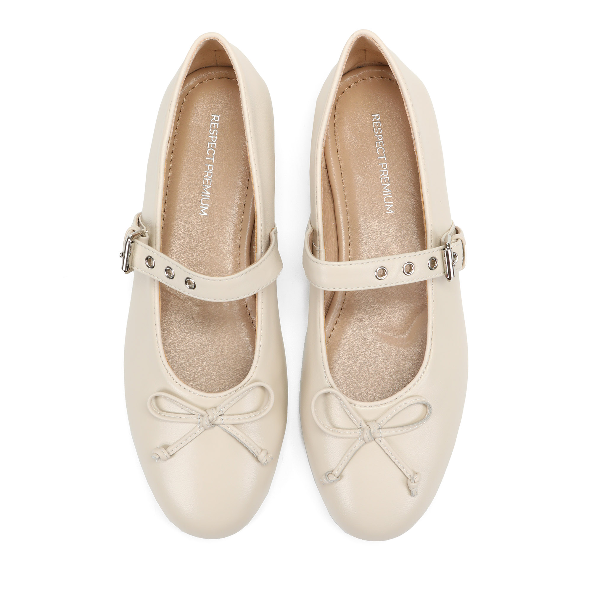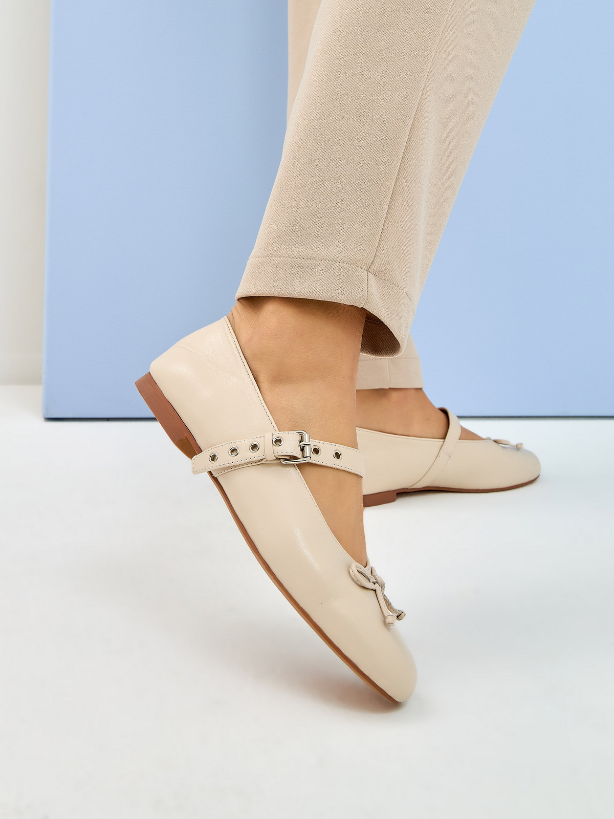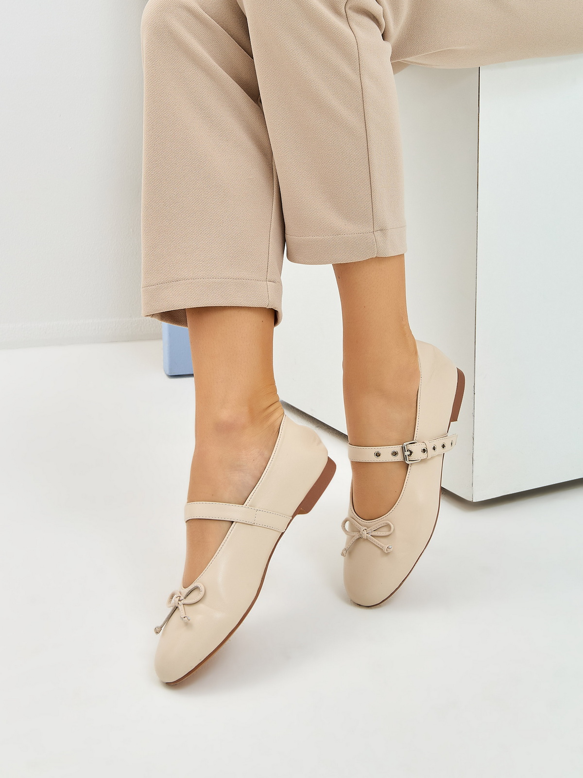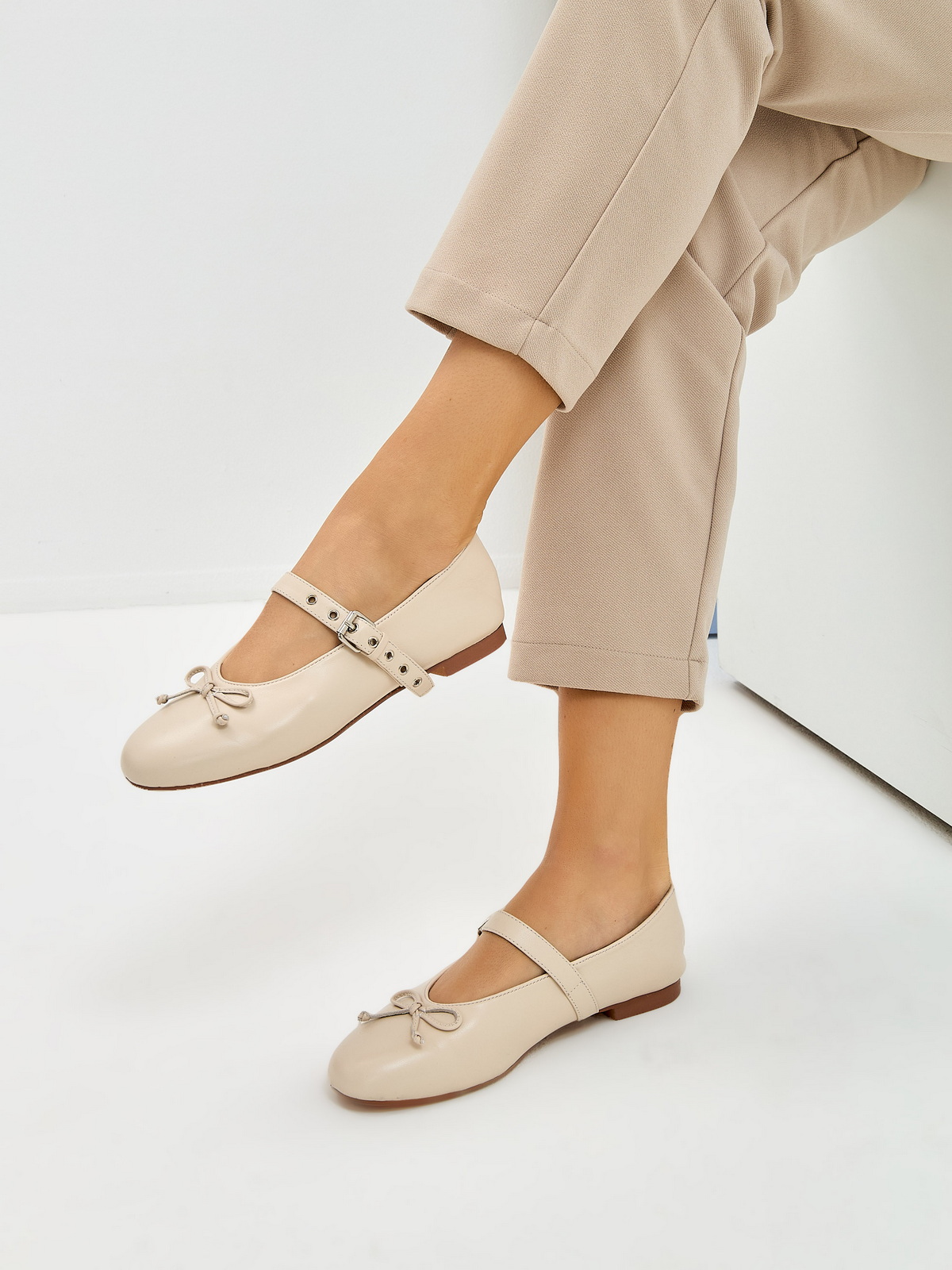 Балетки из гладкой кожи рисового цвета