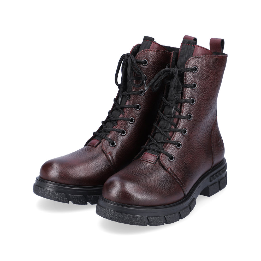 Бордовые зимние ботинки из кожи и экокожи